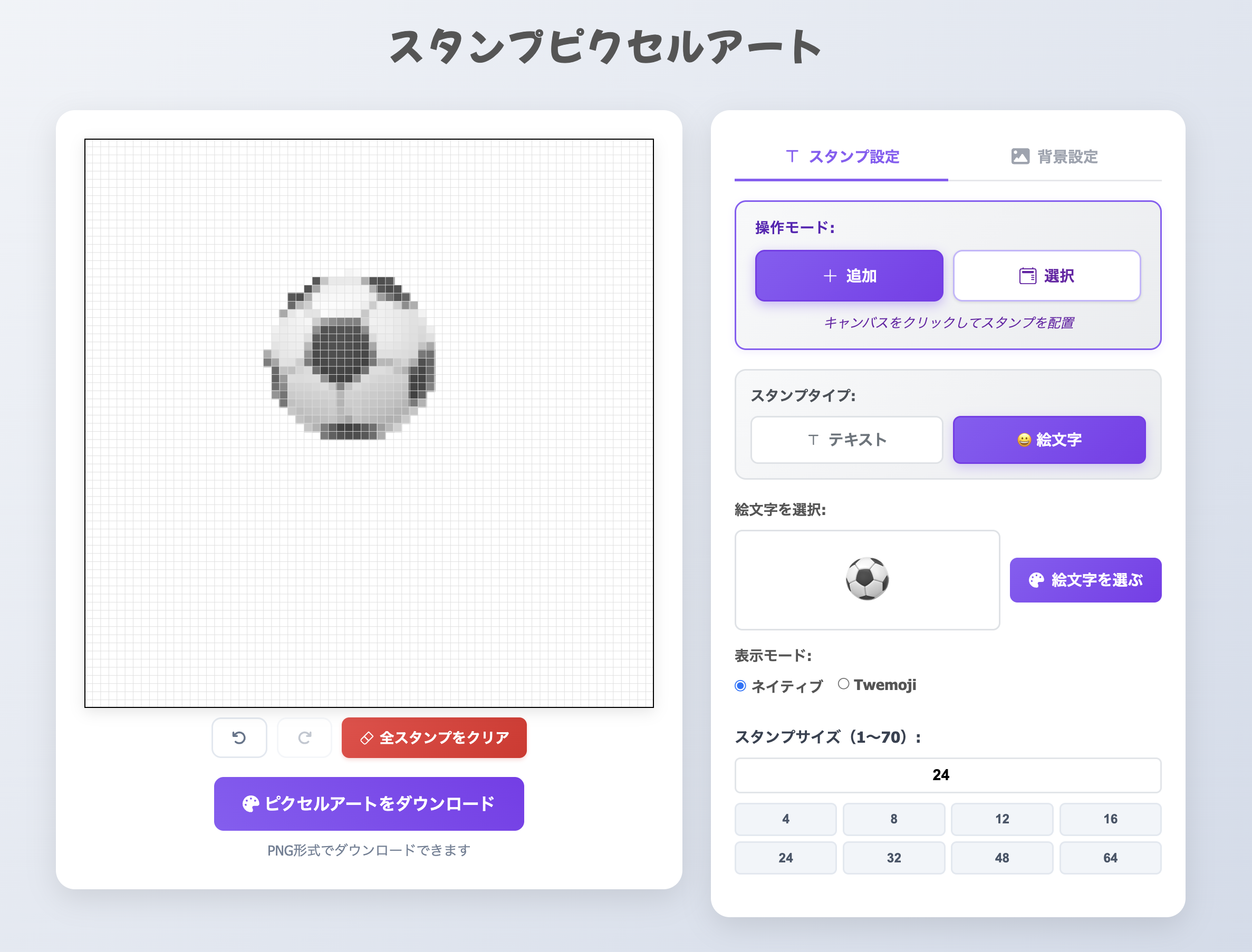 写真画像にピクセルスタンプを配置できる。スタンプピクセルアートを作りました。